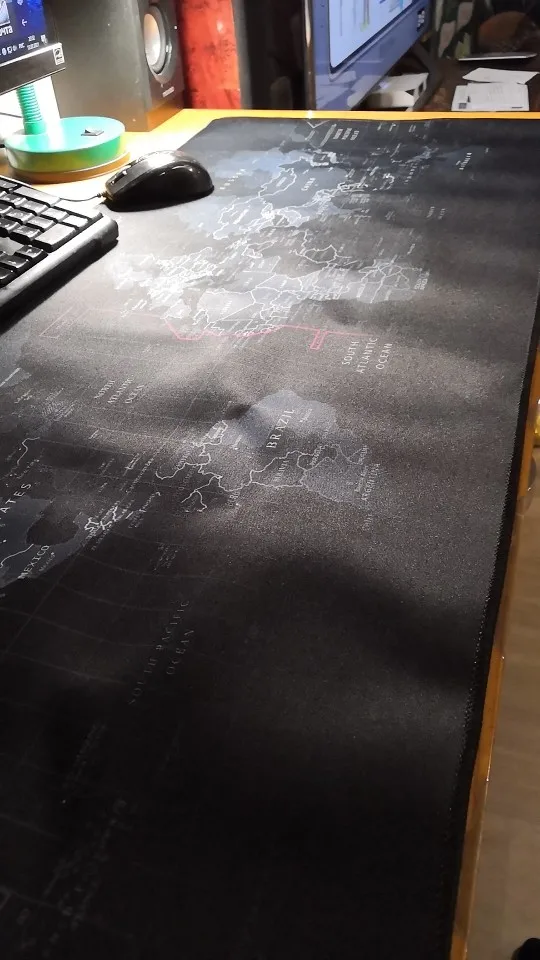 Le tapis est classe. Rendu très qualitatif, aucune odeur, gainant bien, seul endroit le joint du gainant dépasse un peu les fils. Sur la table se pose parfaitement, ne glisse pas. Le clavier sur le tapis ne glisse pas non plus et la souris bouge au contraire plus doux que sur le précédent. Globalement, c’est mon premier grand tapis, jusque là, je n’utilisais que des tapis sous la main. Pour l’instant très satisfaite.